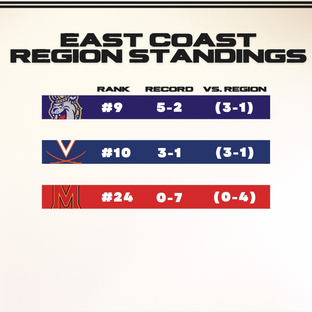 Maryland opens the season at 19th in the NCDA standings. They’ll start off by facing JMU in the first match of the tournament, and it should be a good one. UMD’s defensive style, anchored by the arm of Senior All-East Coast corner Adam Butz, makes them a tough matchup for any team in the association. After the first-ever win against JMU last year in program history, as well as competitive games against UVA throughout the season, UMD is prepared to come out of the gate hot. Should the Terps play mistake-free and stay composed, they have a huge opportunity to upset both of their Saturday opponents.