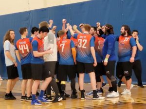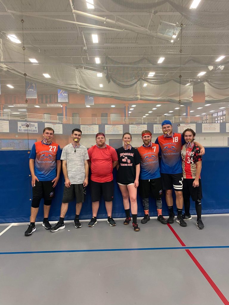 This year Nationals was held at Bowling Green State University with 18 teams in attendance. The tournament was a pool style nationals with the start being on Saturday where we played Kent State, Ohio State University, and Baldwin Wallace. The day started off with us facing Ohio State University (OSU), where we were scrambling around. OSU took a quick point on us in the beginning, which sort of killed the mood for our players. We didn’t give up though, and managed to snag a point off of them tying it up 1-1. During the second half we once again fell apart leaving them to win 2-1. The next game we played a new team in the league, Baldwin Wallace. Our team went into this match with the wrong mindset, thinking that since they were a new team it should have been an easy win, we found out we were dead wrong. We managed to take a slow first point on them, taking nearly the whole first half. At the start of the second half they managed to take a point on us, because we were messing up on very mediocre things, i.e. not seeing someone kneel in the corner of the court with a ball. Baldwin Wallace ended up winning 2-1, very devastating for our teams’ mood. The last game on Saturday had us playing against Kent State. We played like we did in the second half of the Baldwin Wallace game because we let the losses get to our head. Our communication through this game was average at best and everyone was getting tired since it was our third game of the day. Kent ended up winning 3-0 against us. From the losses suffered on Saturday we had to play Ohio for the ability to gain entry into the bracket. We had played Ohio previously in the year at the CMU tournament so we knew how they played. The points dragged out long against Ohio, they had definitely improved since we played them earlier in the semester. There were a few times they had us down to only a few players but we managed to make essential catches, giving us the win 3-0. The win meant we would be placed at the 16 seed, losing 4 places from our 12 seeding on the beginning of Saturday. It was the number 1 seed Grand Valley against us for the first bracket game. This was easily our best game of the season, we worked together like we were 1 person, had great blocks especially from D’andre Johnson, and were throwing on target. Many times throughout the game we had them down to only a few people, which you could tell they weren’t expecting from us. In fact, we were playing so well that they had to play their best player, the MVP of the league. During the entire game our team had a fire under us that couldn’t be stopped. We did end up losing but that is one game that showed us how great of a team we have. GVSU went on to win later that day, saying that we were easily better than a 16 seed, and that we were one of the toughest games they had played at Nationals.