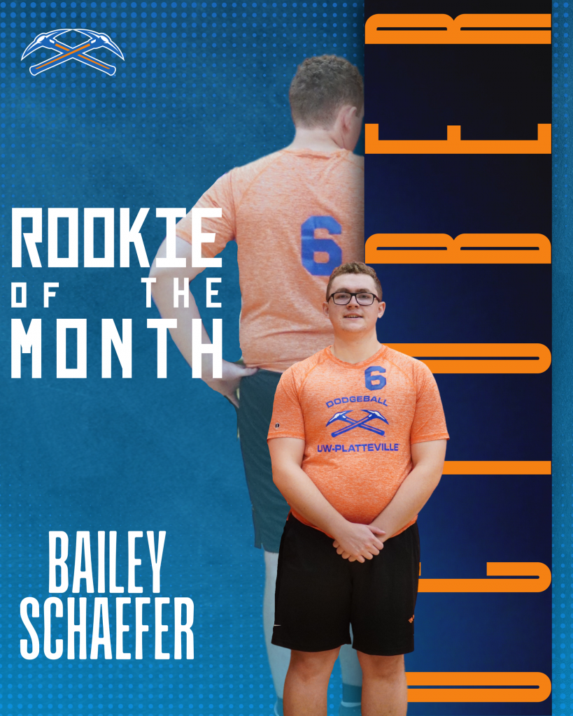 ROTM Dylan is a freshman mechanical engineering major from Oconto Falls, WI. For being just his first year on the team, he is catching on to the sport quickly. He has shown great improvement this month in his catching, blocking, and overall understanding of the game; we look forward to seeing how he does at our next tournament at UNL.